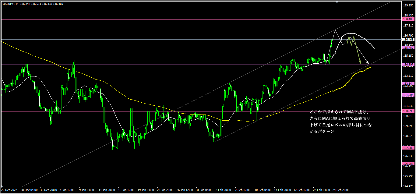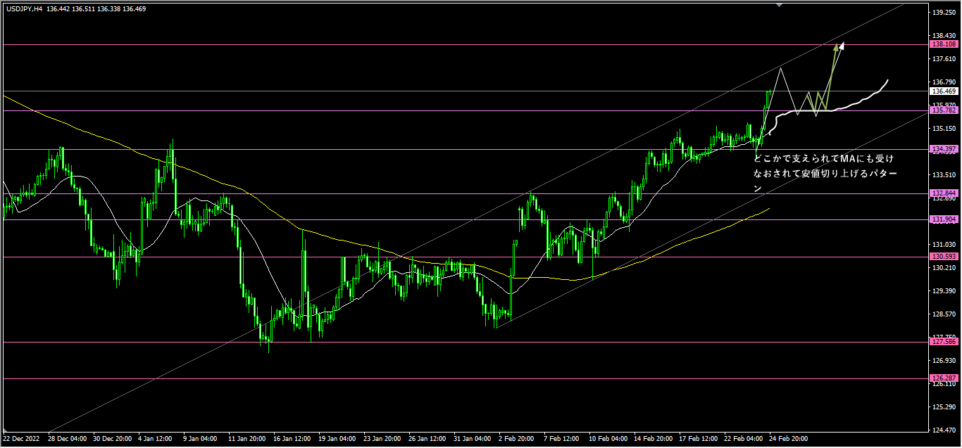 MAから乖離しており、過去のレジサポも近づいているので押しが入るか、もしくはこのまま上昇を継続するかというところです。