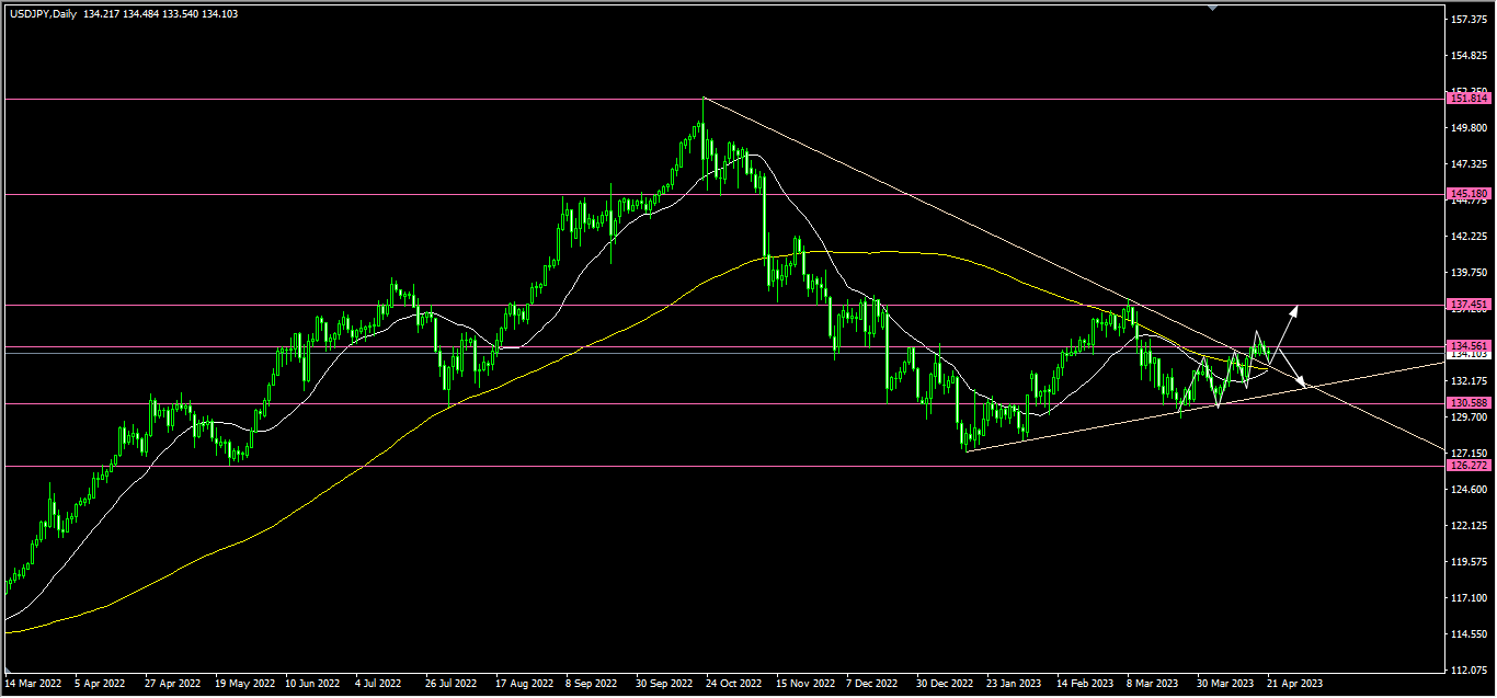 週足レベルでは高値切り下げ安値切り上げ状況を継続。