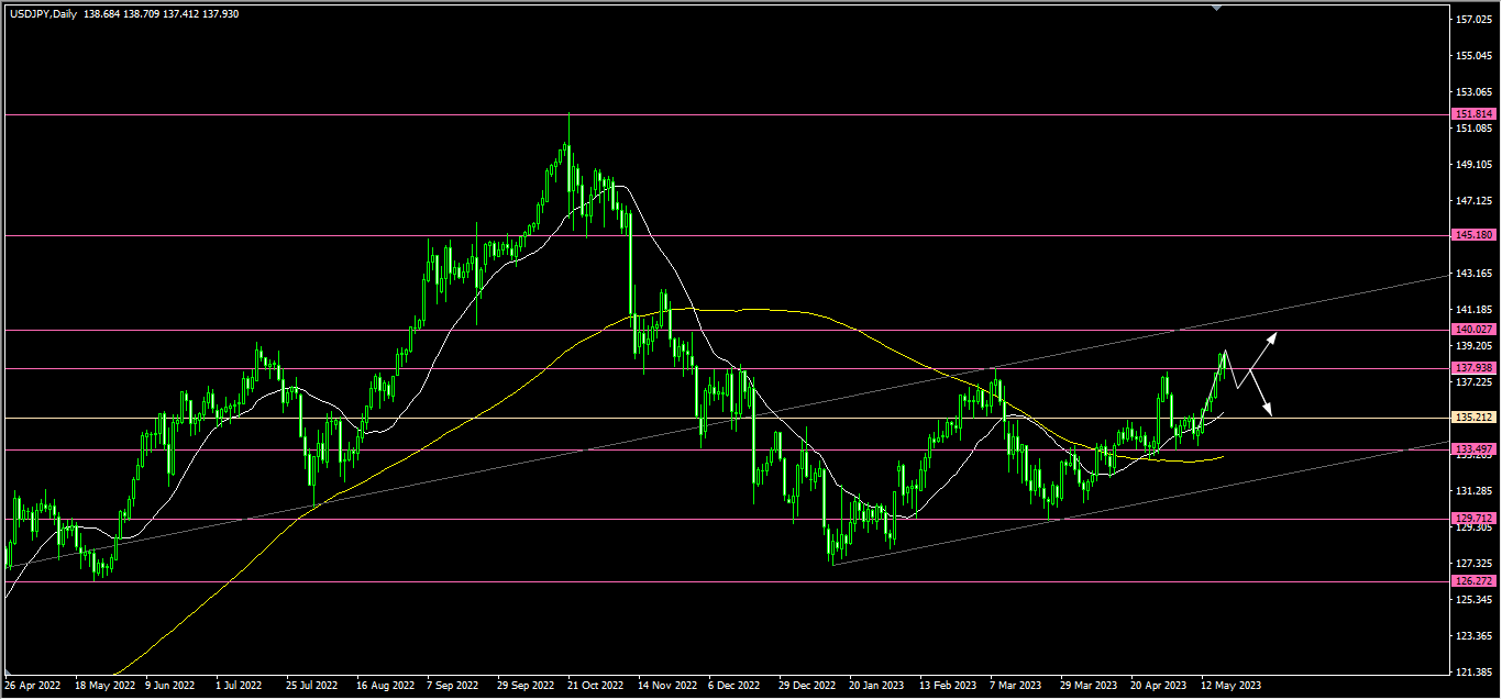 日足は高値を更新して上昇トレンド継続、過去の抵抗ラインを抜けてきました。