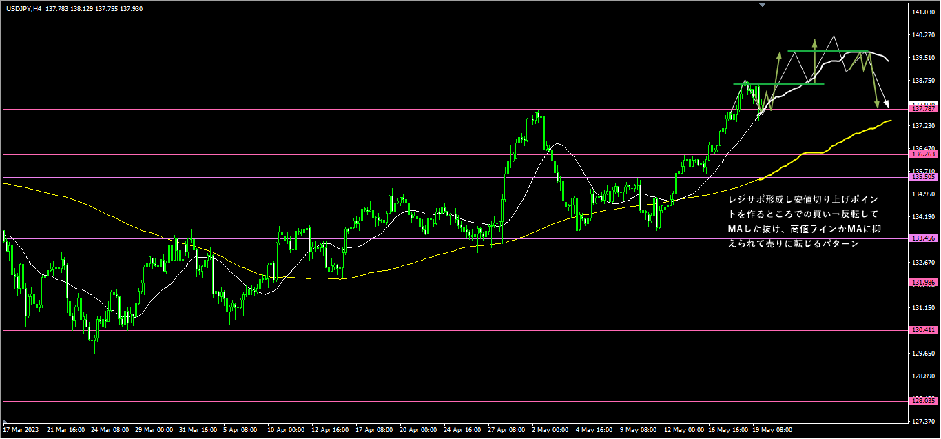 ここから日足レベルの押し目を作るところは下位足で売りで拾っていきたいところ。