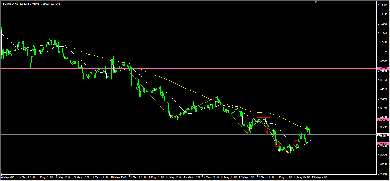 4時間足の高値切り下げポイントで1時間足が明確なダブルトップとなっていました。