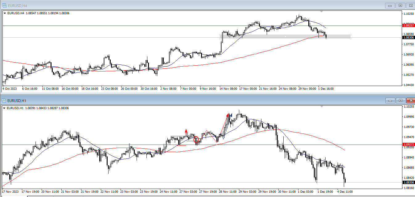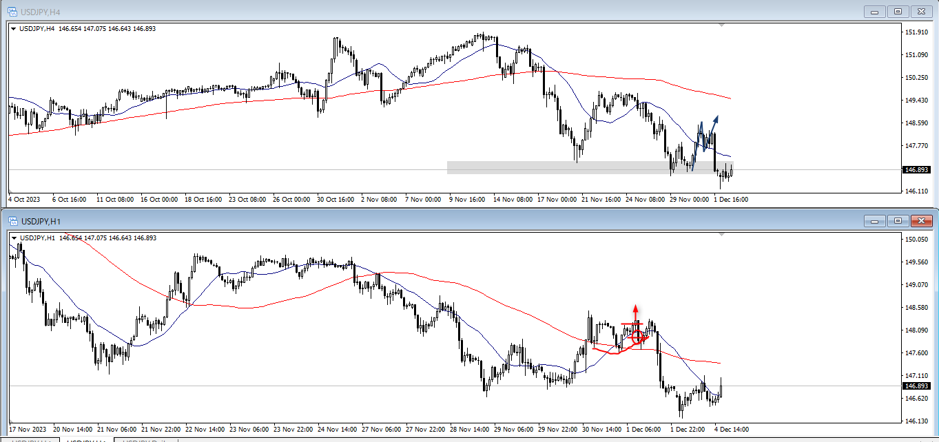 4時間足MAを超えて支えなおされ、安値切り上げるところで買っていくシナリオイメージでした。