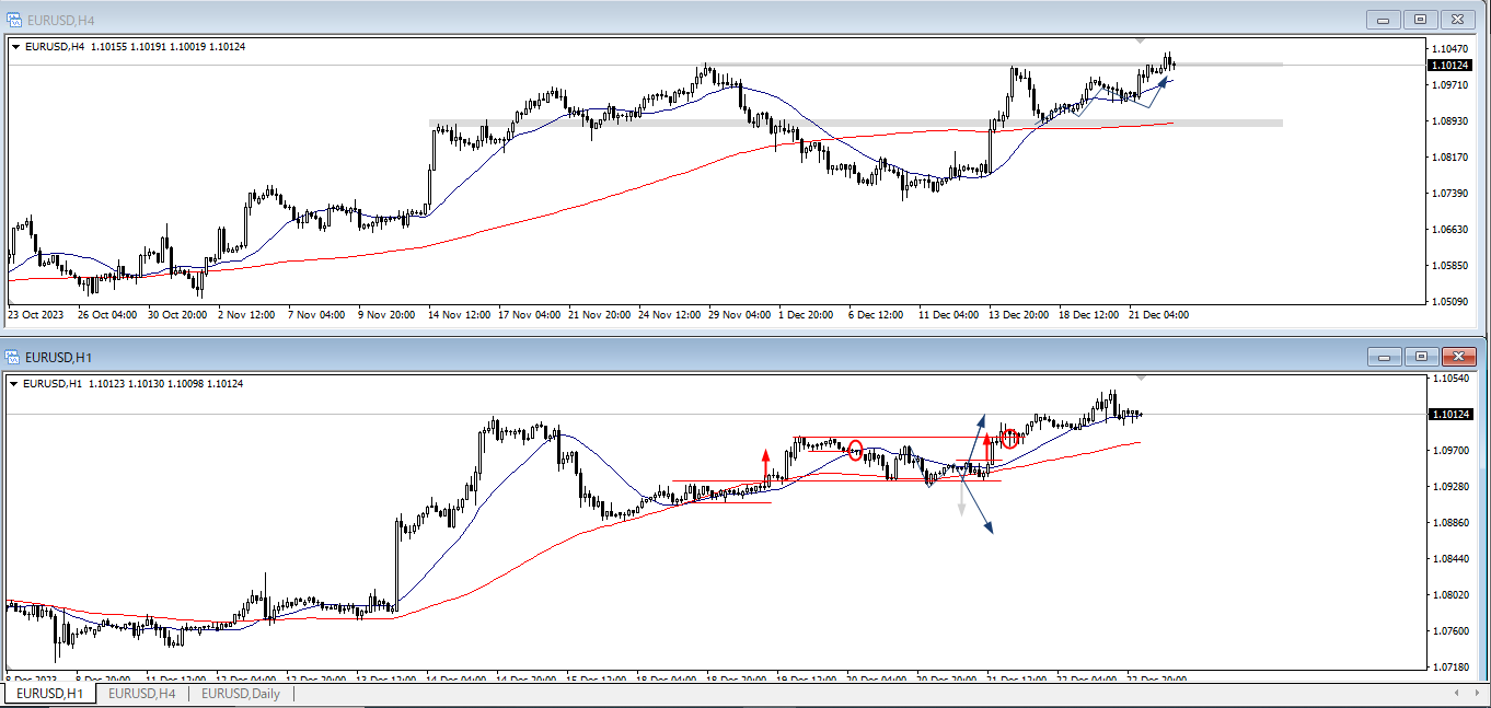 ユロドル4時間足/1時間足