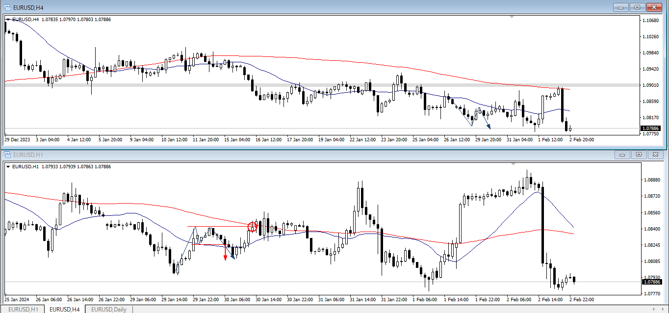 売りのシナリオに近い状況にはなりましたが、時間を使ったことですでに日足MAが近く売っていくスペースがありませんでした。