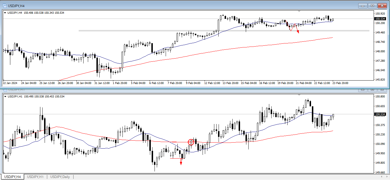 ドル円4時間足/1時間足