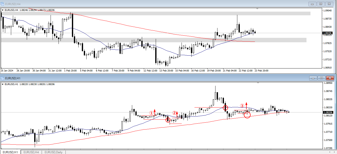 ユロドル4時間足/1時間足