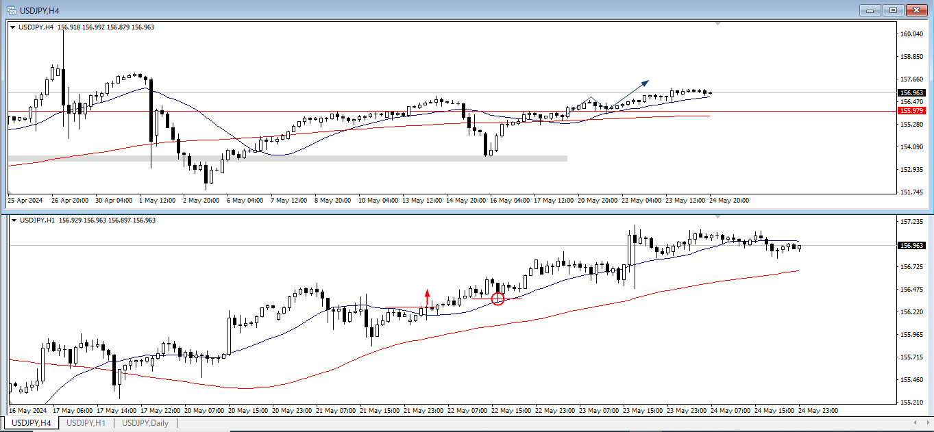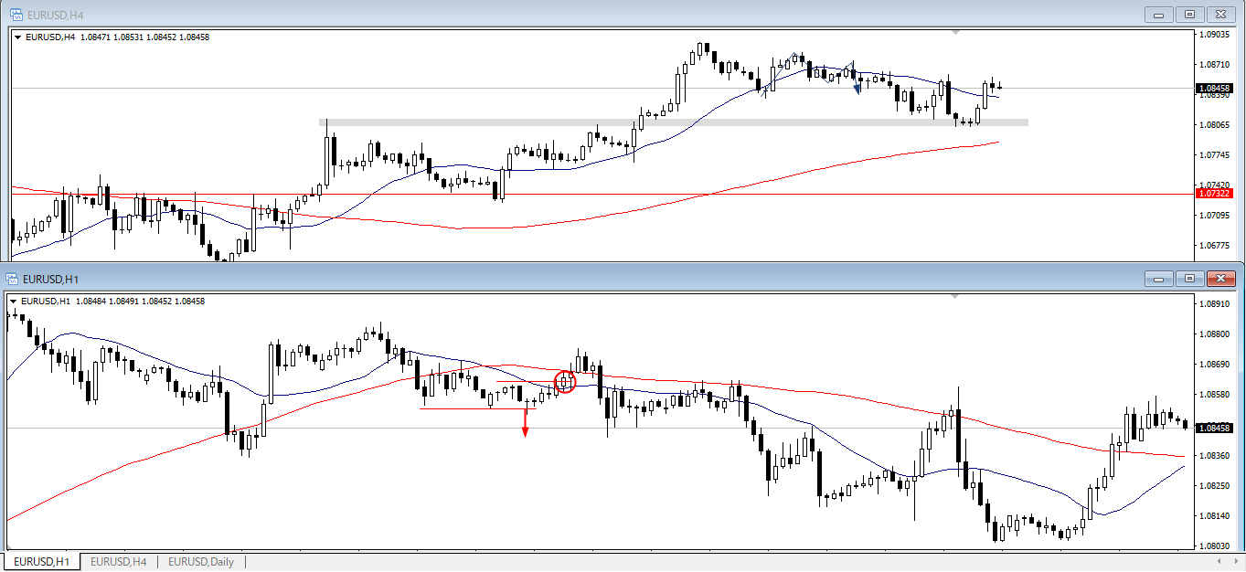 4時間足高値切り下げポイントとしては中途半端で1時間足でもすでに下げているところで売ってしまったのが反省点でした。
