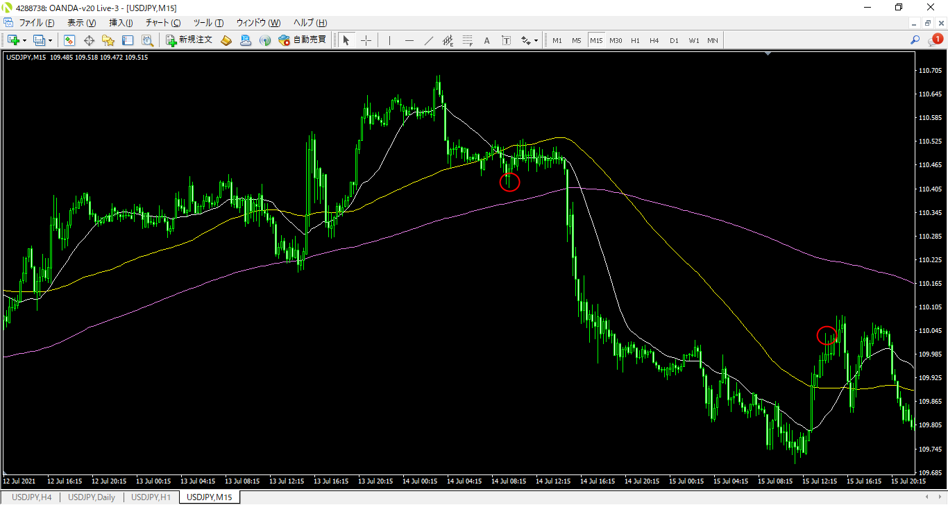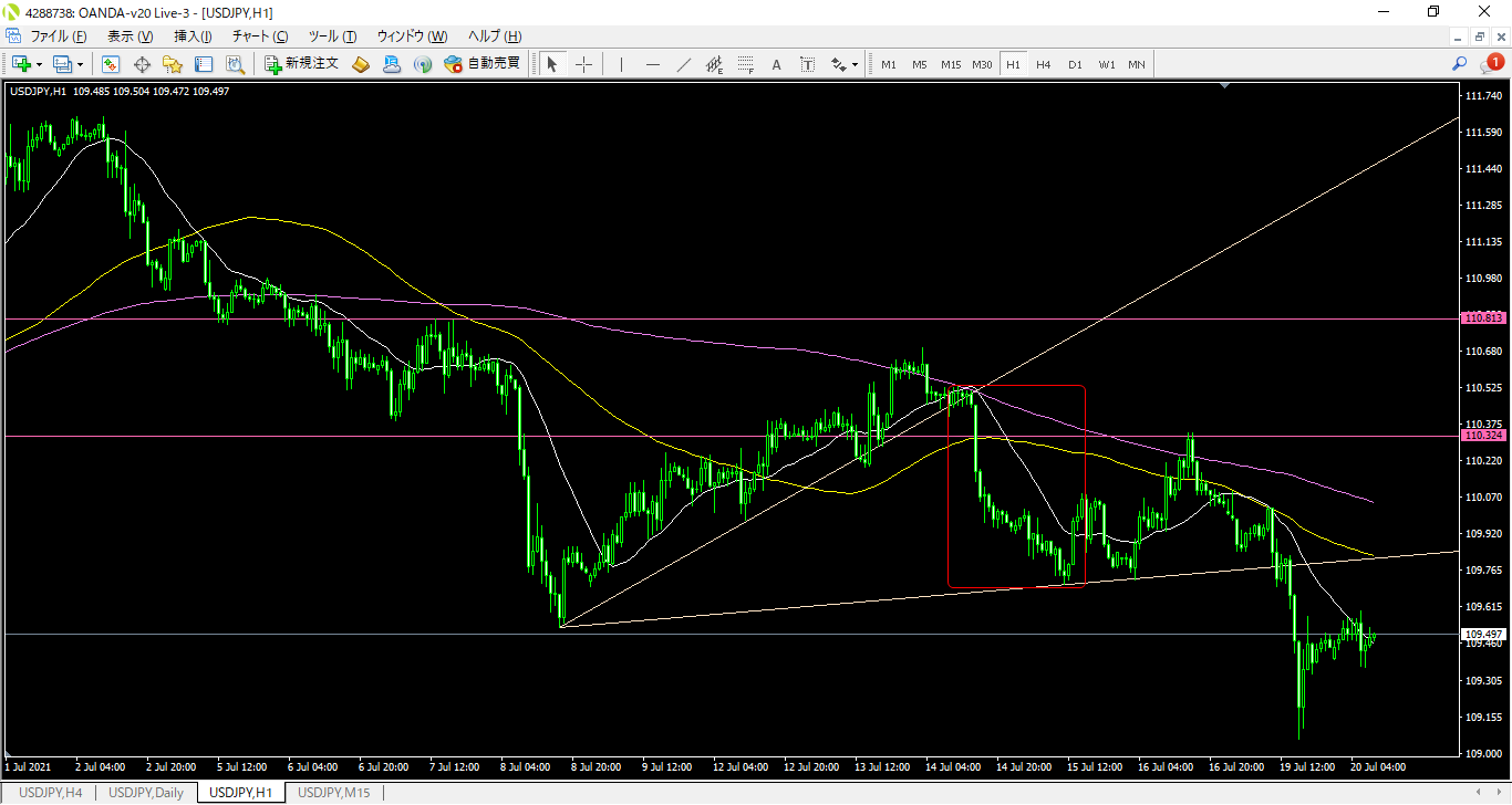 日足の安値も割っており、さらに高値切り下げていく可能性がありました。